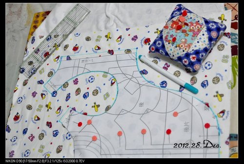(照片~正在畫版型)